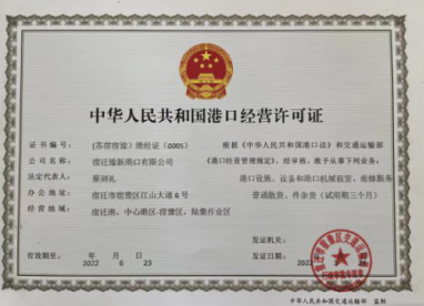 3月26日,获得宿迁市交通行政主管部门颁发的老码头试运营许可证;