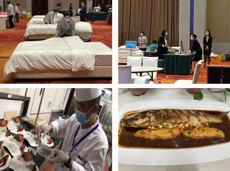 近日,盐城港文旅集团旗下半岛温泉酒店参加了2022年盐城市星级饭店从业人员技能竞赛(选拔赛)。本次竞赛设前厅服务(含服务英语考核),客房服务、中餐服务、西餐服务、烹饪技艺等项目。来自盐城各星级饭店近60名选手参与,各施所长,一展风采。