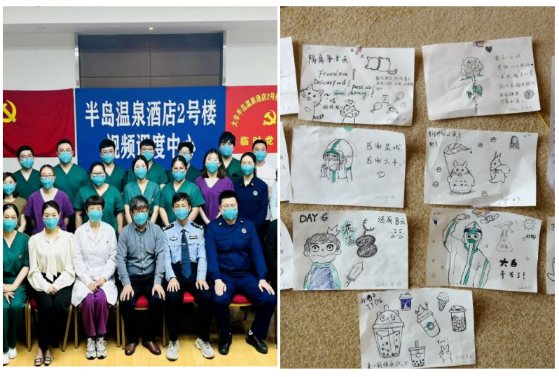 风浪显担当,患难见真情。盐城港先后两次完成兄弟城市集中医学观察点任务,在半岛温泉酒店携手抗疫,同担风雨,共克时艰,守望相助。大家隔着口罩、防护服、屏幕、便签纸相见,熟悉却又素未谋面,但一次次问候,一句句叮嘱,一声声感谢,都弥足珍贵,铭记于心。真诚换真心,隔离结束后,各类社交软件的疯狂点赞、一面面锦旗、一幅幅漫画、一封封感谢信,传递的不仅仅是肯定,更是感激。