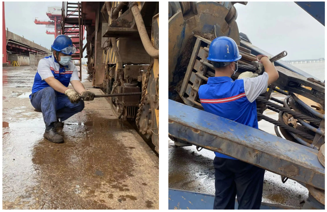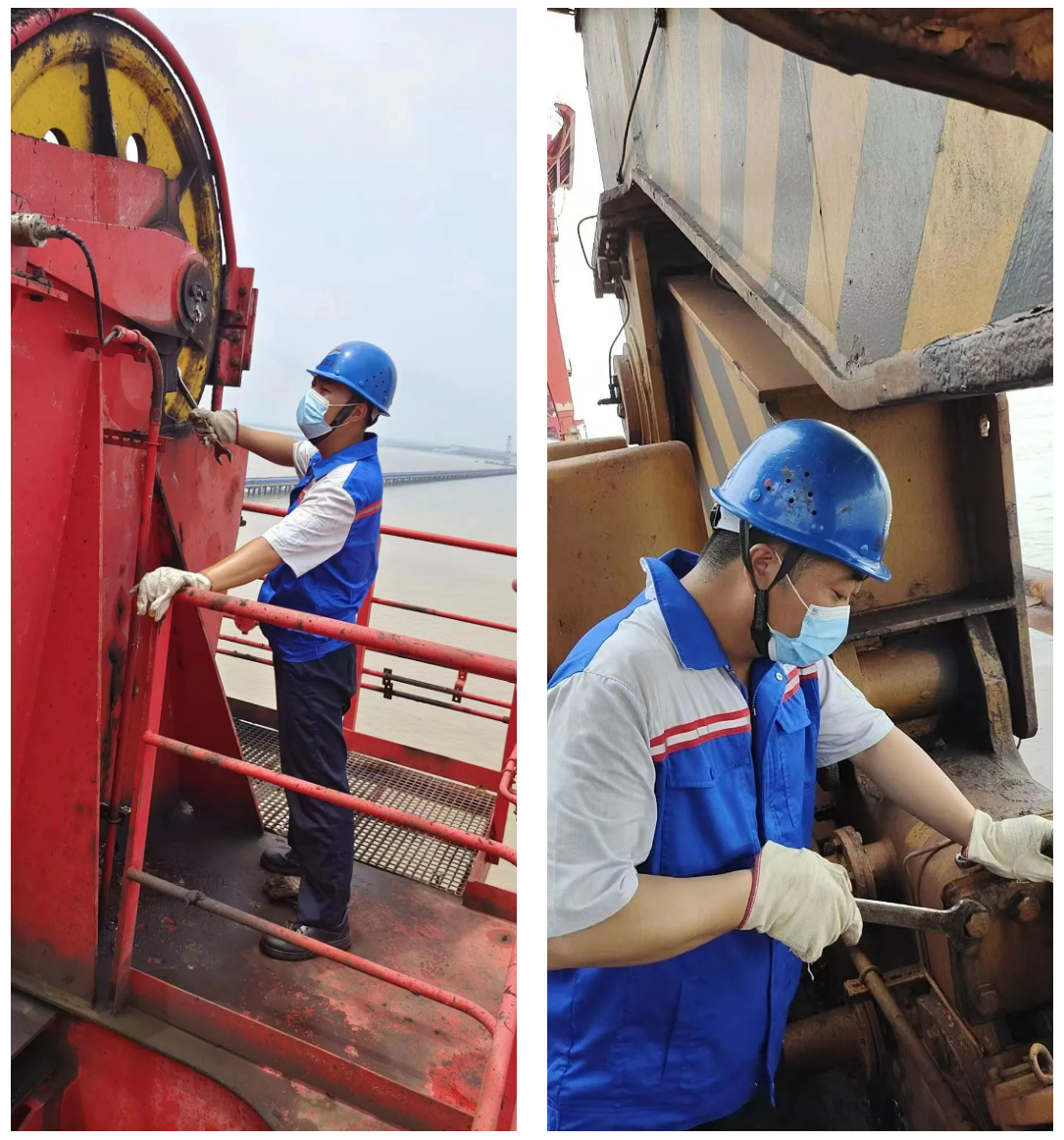 散货码头分公司设备保障科积极制定维保计划,对作业设备设施开展健康大体检、高温大测验,特别是针对机械、电气、门机等重点区域部位检修保修工作,大力组织班组人员走访作业现场,查找隐患、制定清单。检修人员对发现的隐患问题第一时间进行整改维护,确保各类设备设施健康稳定,持续提高码头整体作业效率。