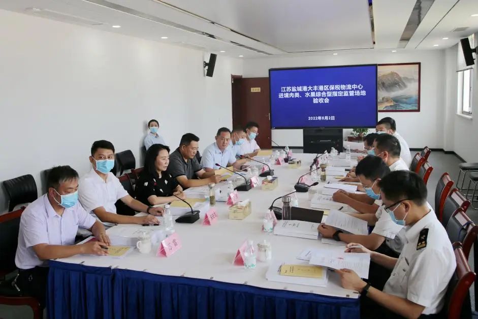 8月2日,盐城港保税物流中心进境肉类、水果综合型指定监管场地顺利通过省级验收。盐城海关副关长李健、大丰区商务局副局长施晓钟、德信体育 总经理助理孙永峰、大丰港集团及盐城港保税物流中心等相关负责同志参加。