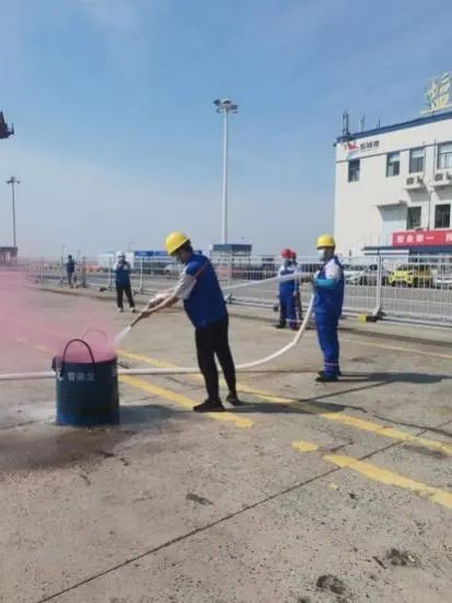 高温热浪持续,码头一线职工头顶烈日、挥汗如雨、坚守岗位,经受着高温的“烤”验,同时,高温也使得码头作业现场的火灾风险骤增,消防安全也面临着更大压力。为确保“三管三必须”安全生产工作落实落地,防患于未燃,近日,港口公司粮食码头分公司举行了消防演练。