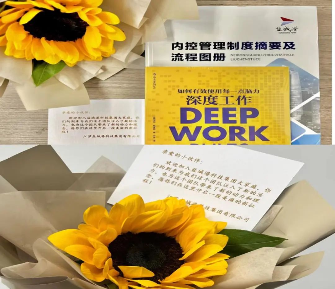 活动中,科技集团还为新员工准备了集团制度汇编、管理类书籍及欢迎贺卡。