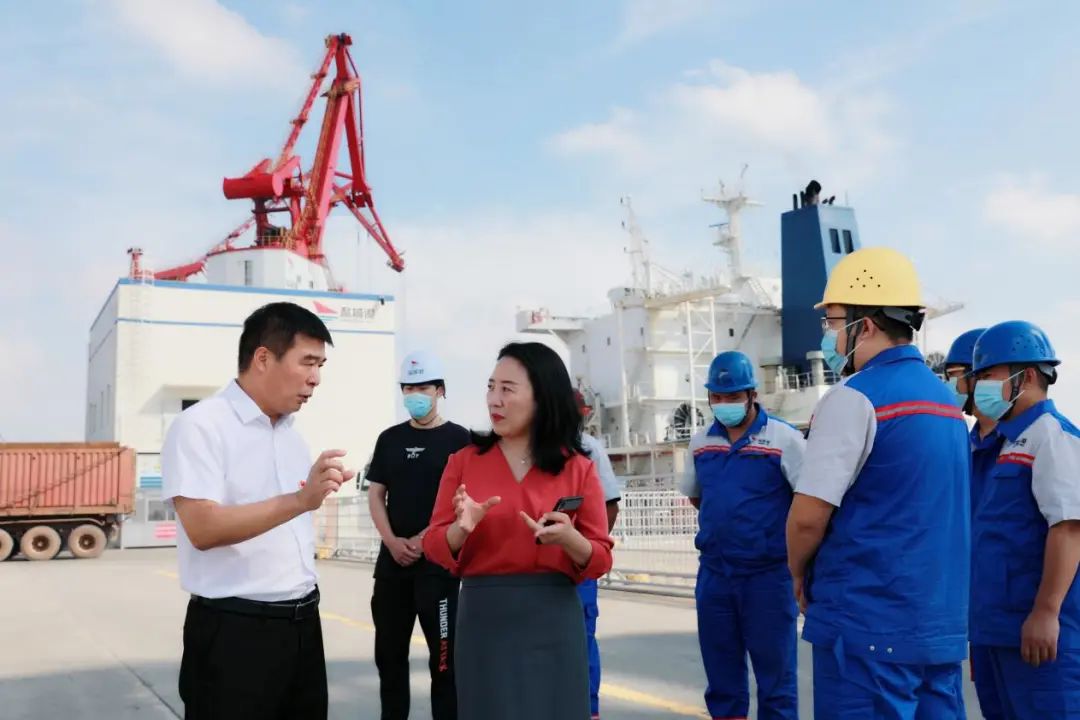 4艘外贸货轮和1艘内贸货轮依次靠泊,车队川流不息,节日期间的码头依然是一片繁忙景象。检查组实地检查了值班值守情况,听取了港口码头节日期间工作安排及安全生产责任制落实情况。检查组指出,港口是外防输入的前沿关口,要突出抓好外贸船作业时的各项防控措施,为守好海上疫情防控防线奠定基础。检查组还向一线员工们送上了节日的慰问与祝福,高度赞扬了他们不怕苦、不怕累、守岗位、保运营的奉献精神,同时询问了大家的工作情况、生活情况,叮嘱他们注意个人安全和自我防护,继续保持良好的精神状态和旺盛的战斗力,扎实做好港区生产经营各项工作。