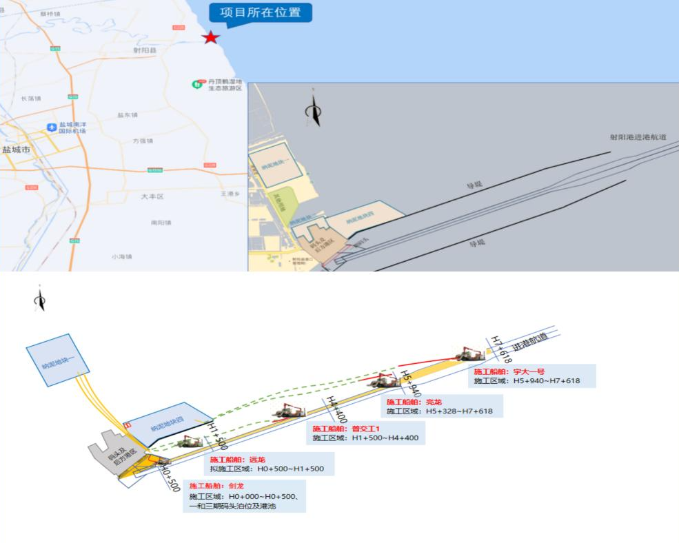 近日,盐城港射阳港区3.5万吨航道维护疏浚工程顺利完成跨航道沉管布设。