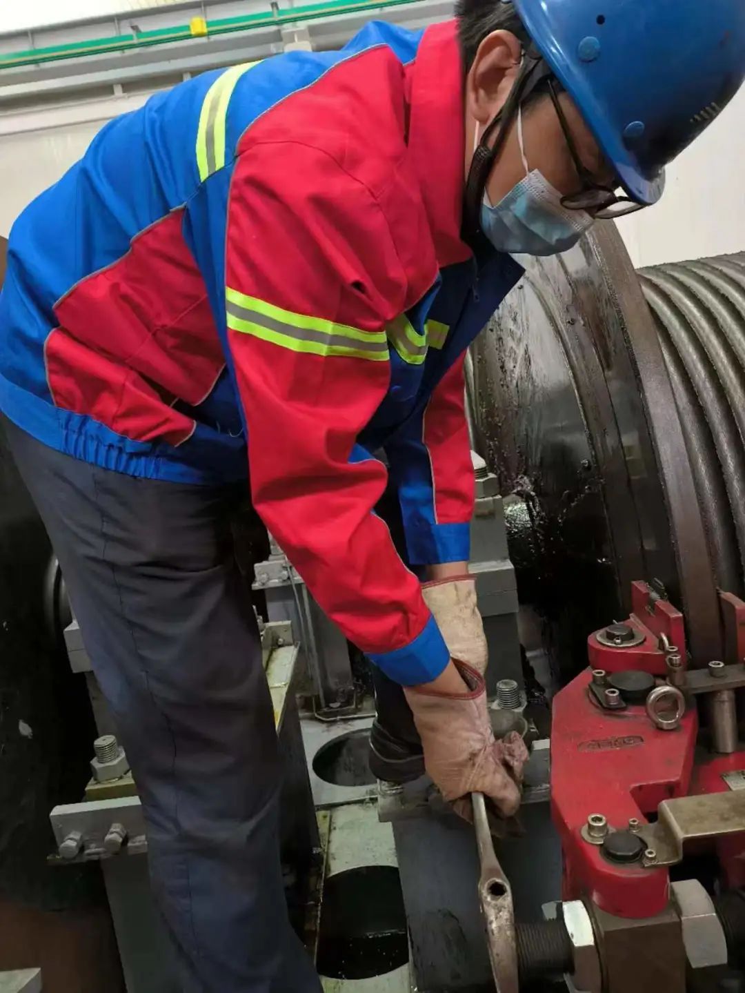 修理人员的汗水和机械