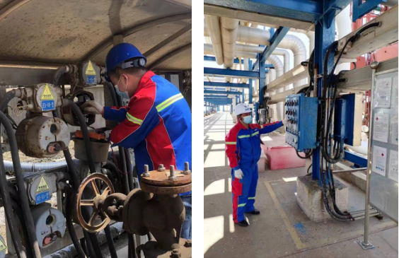 为切实做好各类事故防范,石化码头加强对重点区域、重点部位的检查,逐一核查所有泊位的水管线、阀门的排水,并全部采取保温措施,杜绝出现“跑、冒、滴、漏”现象,确保极寒天气下工艺管线保持正常运行状态。为确保在突发情况下输油臂能够及时收回、正常锁定,石化码头各泊位工作人员对输油臂内臂、外臂锁定装置和固定绳进行了专项检查维护,并在润滑保养项目中对锁定装置进行保养维护,保障输油臂在冬季正常作业。同时,工作人员还对设备高处防风固定装置进行检查,全面做好对罩棚、施工挡板、脚手架以及爬梯等其他高空设施的加固工作。