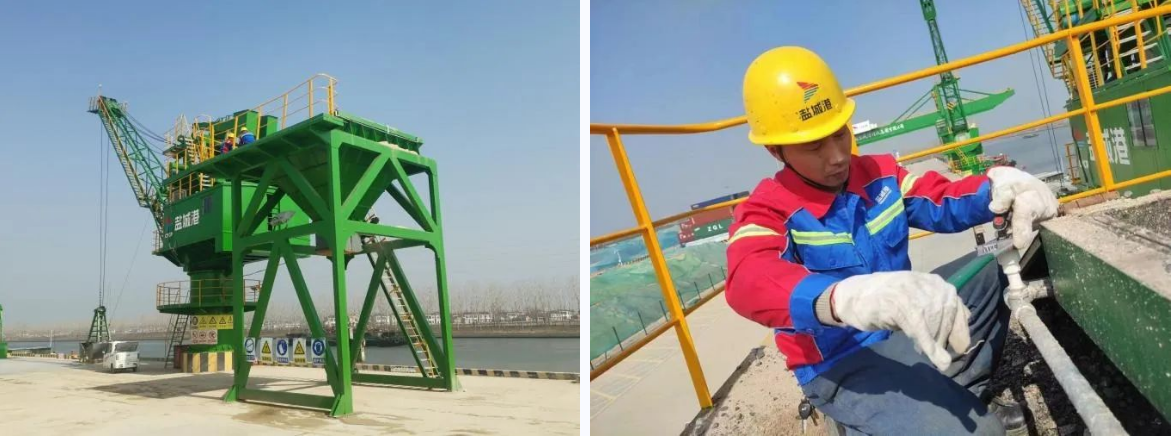 为深入贯彻落实德信体育 绿色、生态、智慧、平安、美丽“五新”港口的总体目标要求。近日,科技集团港机公司与亭湖港区就固定式起重机抑尘改造项目进行技术攻关,结合港区实际生产状况、秉承节约成本的理念,在现有的散货漏斗上加装喷淋抑尘装置,实现喷雾抑尘,解决了在装卸散杂货至漏斗的过程中产生的扬尘问题。