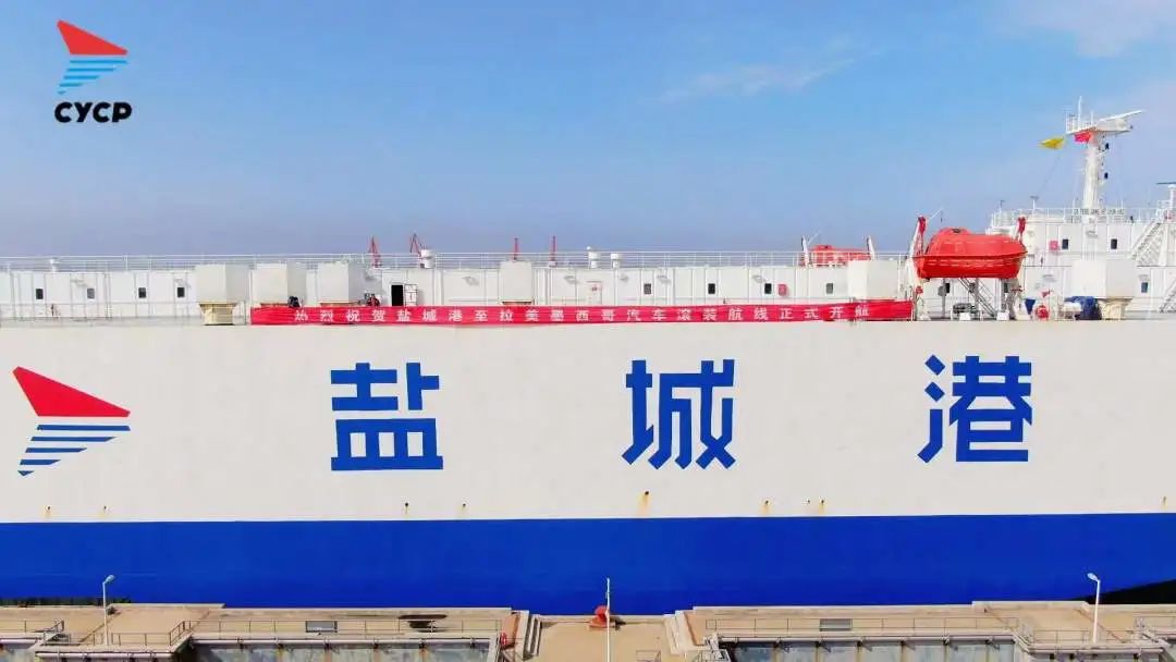 3月18日上午,盐城港“和顺号”汽车滚装船缓缓靠泊盐城港滚装码头,随着一声号令,30多名盐城港职工整齐划一,驾驶着安徽奇瑞汽车厂的出口汽车缓缓驶进滚装船轮舱,标志着盐城港至拉美墨西哥汽车滚装航线的正式开航。