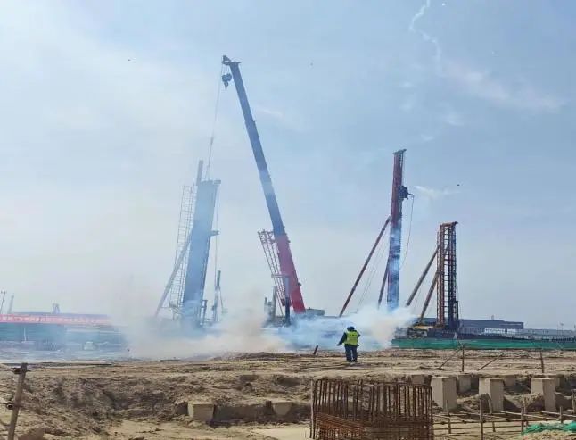 在机械及司号声中,第一根预制钢架被徐徐吊起,稳稳地安装在承台基础上,由项目咨询公司代管的大丰港综合仓储物流项目钢结构工程首吊成功完成,标志着该项目正式进入安装施工阶段,开启建设新篇章。