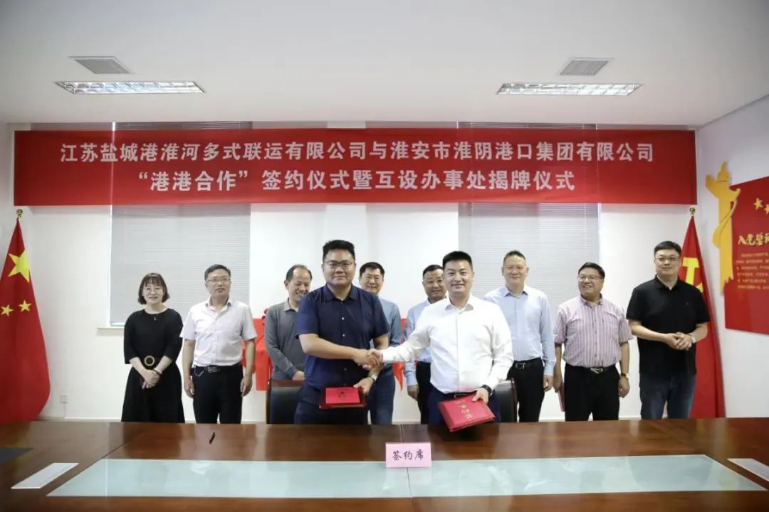 6月1日下午,新时代“南征北战闯市场”百日攻坚活动淮河公司与淮阴港口集团“港港合作”签约仪式暨互设办事处揭牌仪式成功举行,本次合作拉开了盐城港与淮河生态经济带沿线又一重要港口的合作序幕,标志着盐城港深入融合淮河生态经济带再显新作为,集团党委委员、纪委书记周旭东,集团党委委员、副总经理陈正华,淮河多式联运主要负责同志,集团生产运营部相关负责同志参加。