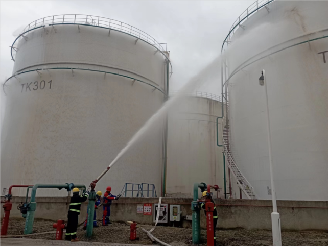 此次演练,通过模拟罐组三TK302储罐出口法兰垫破裂发生汽油泄漏进而引发火灾事故的场景,以实战演练的方式对员工进行应急反应和处置能力的培训和考验,锻炼了员工的应急反应能力和团队协作能力,有效地检验了应急预案、应急装备、应急物资的实用性和可操作性,确保员工充分掌握应急处置措施和技能,能够在紧急情况下作出正确的决策和行动。