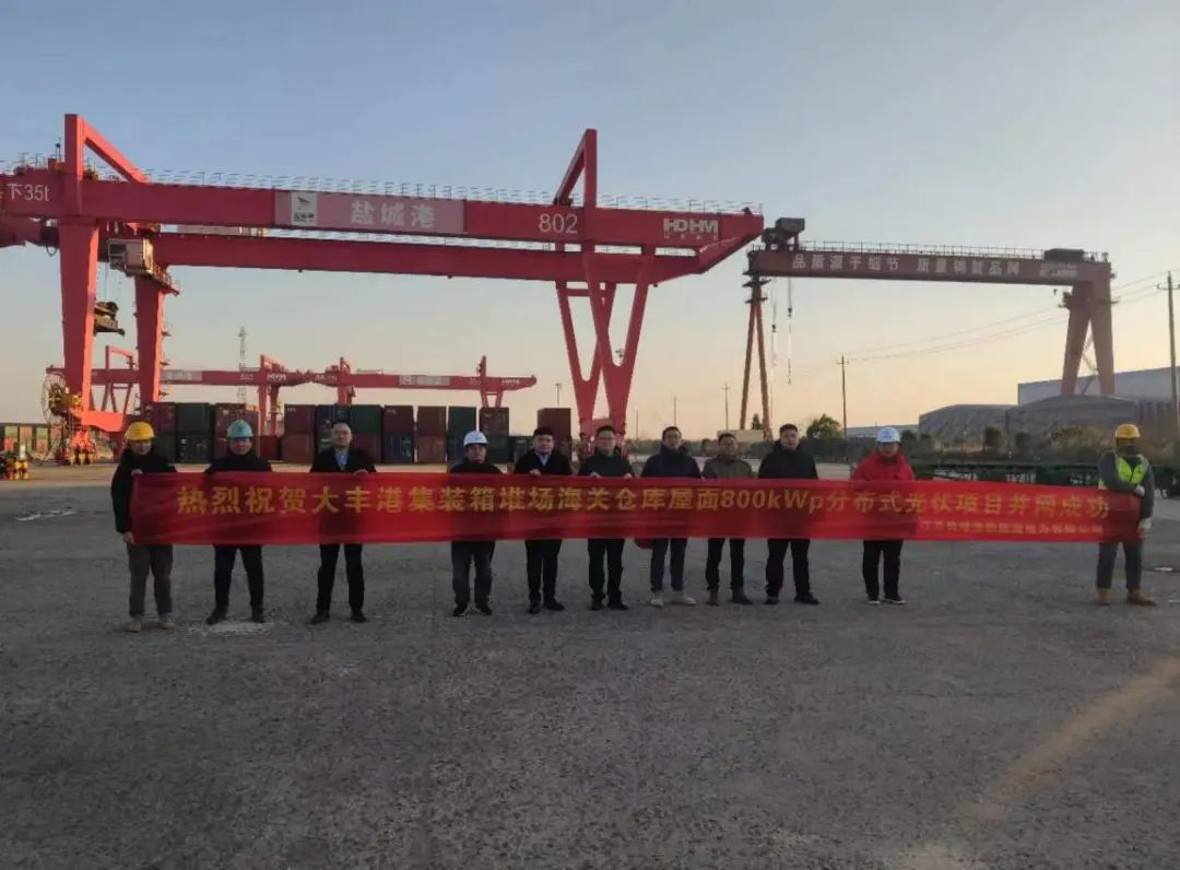 目前盐城港各港区仓储屋面分布广泛,光伏装机容量正稳步提升,新能源电力公司始终坚持以“五新港口”建设为引领,寻求清洁能源高质量发展,充分发掘港区资源优势,打造盐城港“微电网”,通过绿电覆盖港区用电,实现“零碳港口”目标。本次并网发电的光伏电站位于大丰港区海关仓库、自动化集装箱堆场,项目采用“自发自用,余电上网”模式,在优化港区能源结构的同时有效减少港区对传统能源的依赖。