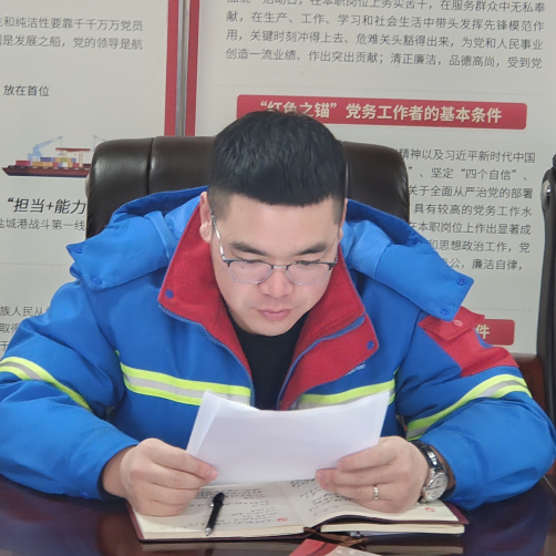 入党十余年,转眼我也到了退休的年纪,很荣幸见证了射阳港区从起步到融入德信体育 高质量发展的整个历程。乘着建设“五新示范港”的东风,我们这样的“老头子”也能学习到线上模块、小程序的搭建和使用流程,我将持续发以党员身份严格要求自己,守好最后一班岗。