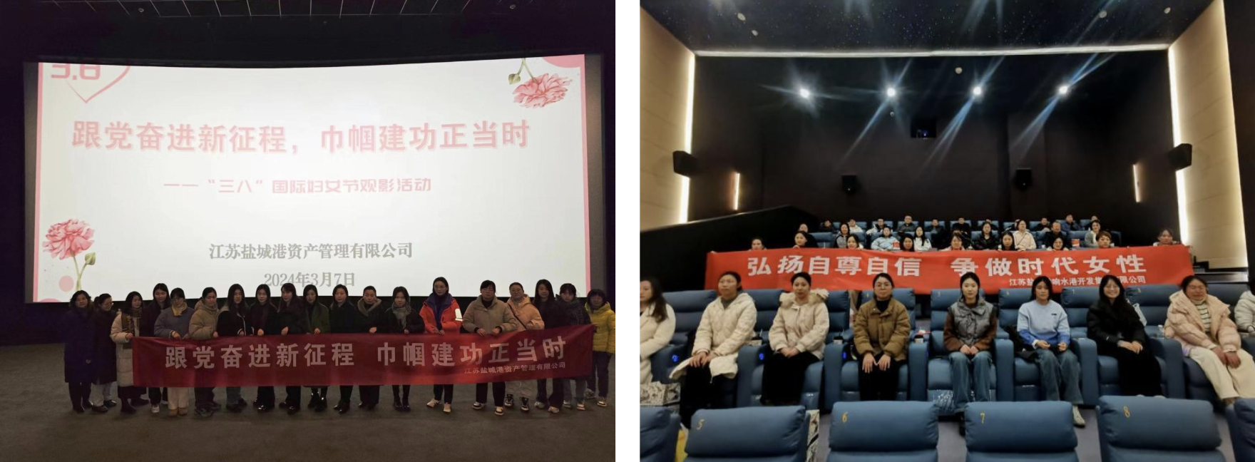 响水港区、资产公司分别组织观看电影《第二十条》,通过观影活动向全体女职工表达诚挚敬意与温馨祝福,同时进一步弘扬法治精神,提升员工法律意识,弘扬社会正能量。