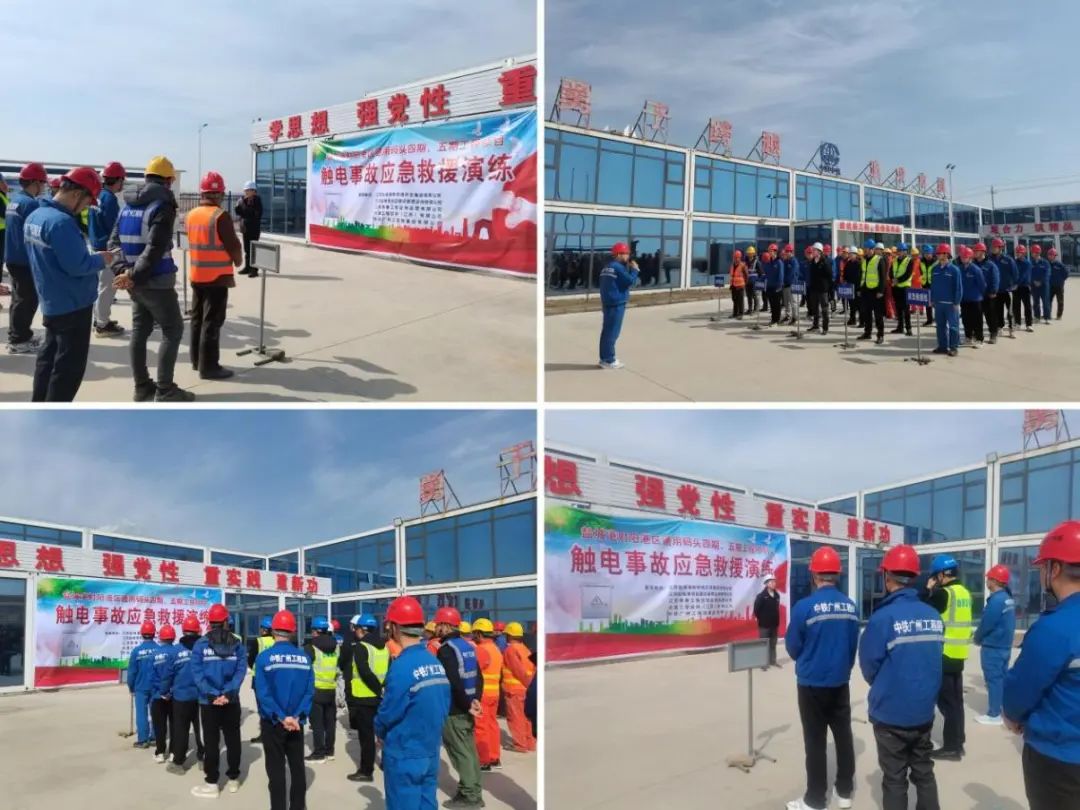 为进一步推进平安工地建设,普及安全用电知识,强化全员安全意识,提高参建人员的应急处置能力,射阳港区联合项目咨询公司及射阳港区通用码头四期、五期工程总承包单位开展触电事故应急救援演练活动。