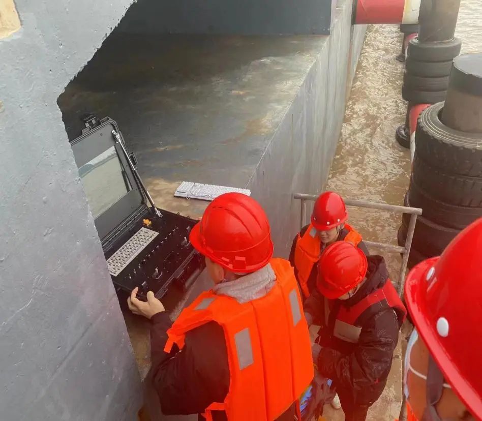 ▲勘测公司与江苏科技大学在大丰港区安保船码头进行了水下机器人作业环境调研。