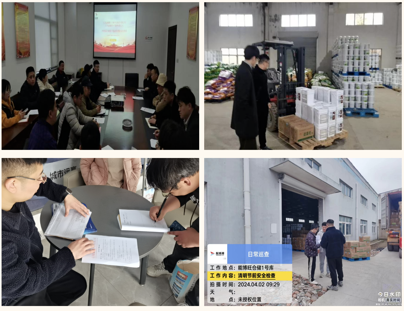 资产公司全覆盖抓好安全生产工作,组织召开一季度安全生产工作例会暨清明节前安全工作安排部署会,明确责任分工,压实工作责任。联合大丰港集团组织木材园区租赁企业开展“厂中厂”和电动自行车消防安全专题培训,向承租人开展消防知识宣传教育,进一步强化企业安全生产主体责任落实,提升企业安全管理水平和防控各类事故的能力,抓牢教育培训,提升管理实效。开展节前安全大排查,对检查发现的问题当场下发整改通知书,要求立即或限期整改,切实消除隐患;发放节前安全提示函,强调疏散通道、安全出口等生命通道必须保持畅通,巩固前期消防隐患整治成果,排查新生成和“回潮”的隐患,强化隐患检查,守护“清明”安全。