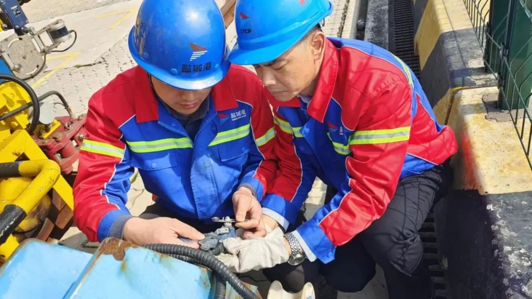 该自动化堆场四台轨道吊全部为自动化轨道吊,堆场现场作业由原先的以人为主操作模式转化到以设备为主操控模式,从而展开盐城港历史性的科技推动生产里程碑。科技的进步推动了高质量的生产力,同样也对设备性能保障也提出了新的更高要求,有这样一支维保队伍,他们应盐城港发展需求,默默守护设备的健康,让生产持续高效运转,助推着盐城港高质量发展征程,他们就是科技集团集装箱运维项目团队。