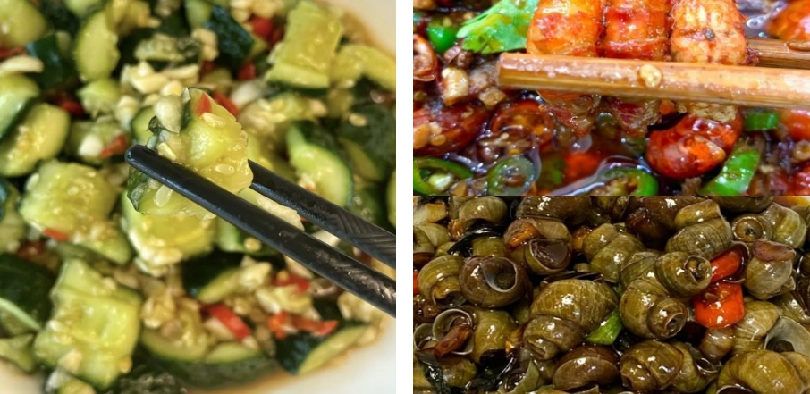 早餐有爽口的凉拌黄瓜,午餐是香辣的炒螺螺和下饭的毛豆龙虾尾,下午还能来一杯清凉的绿豆汤或是一牙西瓜,想到家中冰箱里冒冷气的饮料和冰棍,他说这是最美味的季节~