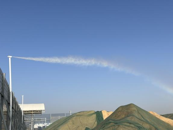 作为精准防尘抑尘重要试点工程,粉尘监测与喷淋系统一体化项目建设覆盖射阳港区整个散货堆场区域,与万吨级和3.5万吨级堆场原有喷淋系统形成联动,共建设10根雾桩喷淋,依据微脉冲气溶胶激光雷达向大气中发射连续的脉冲激光,获取大气的后向散射信号,连续监测大气气溶胶的分布软件系统运行,设施预警数值并联动自动化喷淋,实现智能化精准降尘抑尘,项目建成使用可实现在减少1名人工使用成本的同时,据估算用水量较之从前可节约8000t/年。