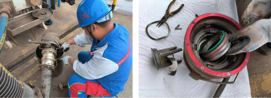 经港储石化维保先锋队自主研究,以“屡战屡败、屡败屡战”的精神,不断尝试各种材质,最终以四氟材料包氟处理的密封圈替代原有材质的密封圈,成功完成创新改造,有效提升生产装卸作业本质安全。经核算,改造一套密封圈的价格为30元,比原先采购一套6000元的原厂密封圈大幅降低成本,且使用效果极佳,彻底解决干式阀泄漏问题。