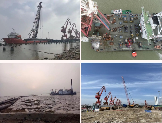 在射阳港区码头四期建设工地,工程机械往来穿梭,施工人员不惧“烤验”,挥汗如雨,处处一派繁忙景象。为确保施工质量和安全有序可控,港区项目组认真组织工程监理进行图纸会审,从地基处理、管桩验收、支架搭设、灌注桩施工等每道工序进行严格把控。随着完成地基静载试验,陆域东、西两侧开挖排水沟,标志着项目整体施工进度又向前迈进一大步。
