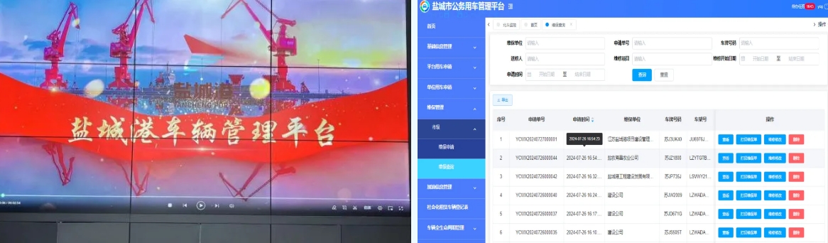 “盐城港公车管理平台”作为盐城市第一家接入市公车管理平台,为盐城市国企公车管理改革树立典型。坚持“科学化、制度化、规范化、标准化”的车辆“四化”管理要求,科学使用车辆调度、车辆维保全流程监控、节假日规范封存等功能,确保车辆各项费用节约可控,全方位提增效益促发展。