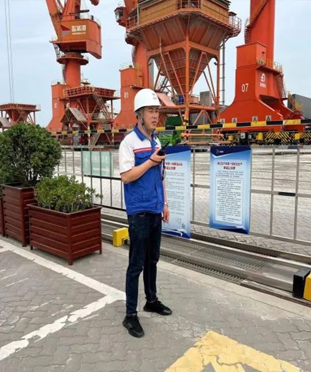 92年出生的朱道雄,中共党员,2010年服役于陆军第27集团军的他,曾获得过个人三等功和优秀士兵等荣誉称号。2022年7月转业入职于滨海港区港务公司生产组,军人那特有的气质使他无论干什么工作都有一股韧劲。7月份以来,连日的高温酷暑持续“霸屏”,35˚的气温接续攀升,酷暑当前,为了保障港口运行顺畅,退伍军人朱道雄没有半刻“清闲”,主动请缨,高温季节合理安排作业计划,在保障人员安全的同时,及时调整门机与船舱距离;统筹协调装卸作业、车辆运输,确保船舶能按时靠离泊。朱道雄指挥若定,夜以继日奋战在码头一线,用敬业和坚守勾勒出盐城港滨海港区最美的身影。