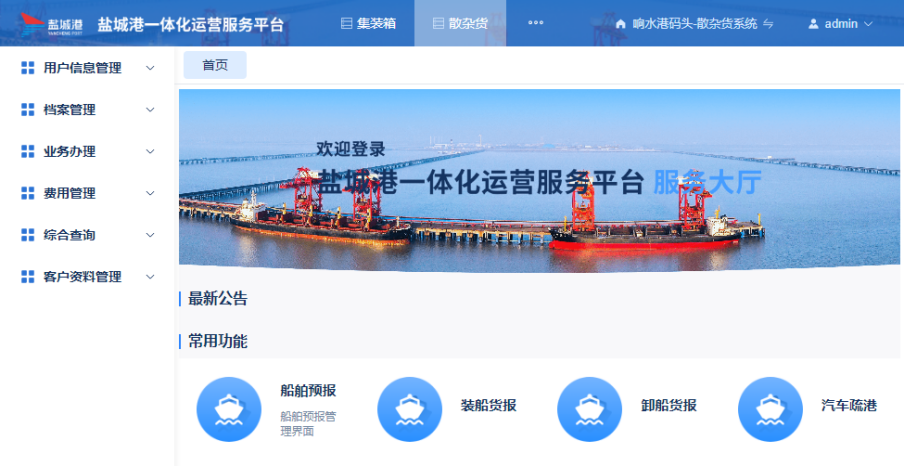近日,盐城港网上营业厅响水港散杂货模块已正式上线运营,标志着盐城港在港区数字化转型的道路上又迈出了重要一步。该系统将为用户提供更加便捷、高效的散杂货运输服务,进一步提升港口的竞争力和影响力。