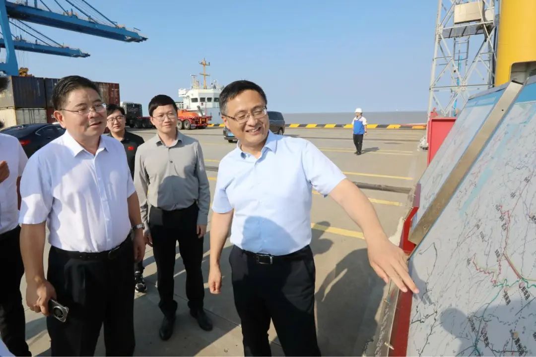 赵守才一行先后来到自动化集装箱堆场、大丰港区集装箱码头、通用码头等地实地调研,详细了解港区生产经营、发展规划及运营管理等情况。