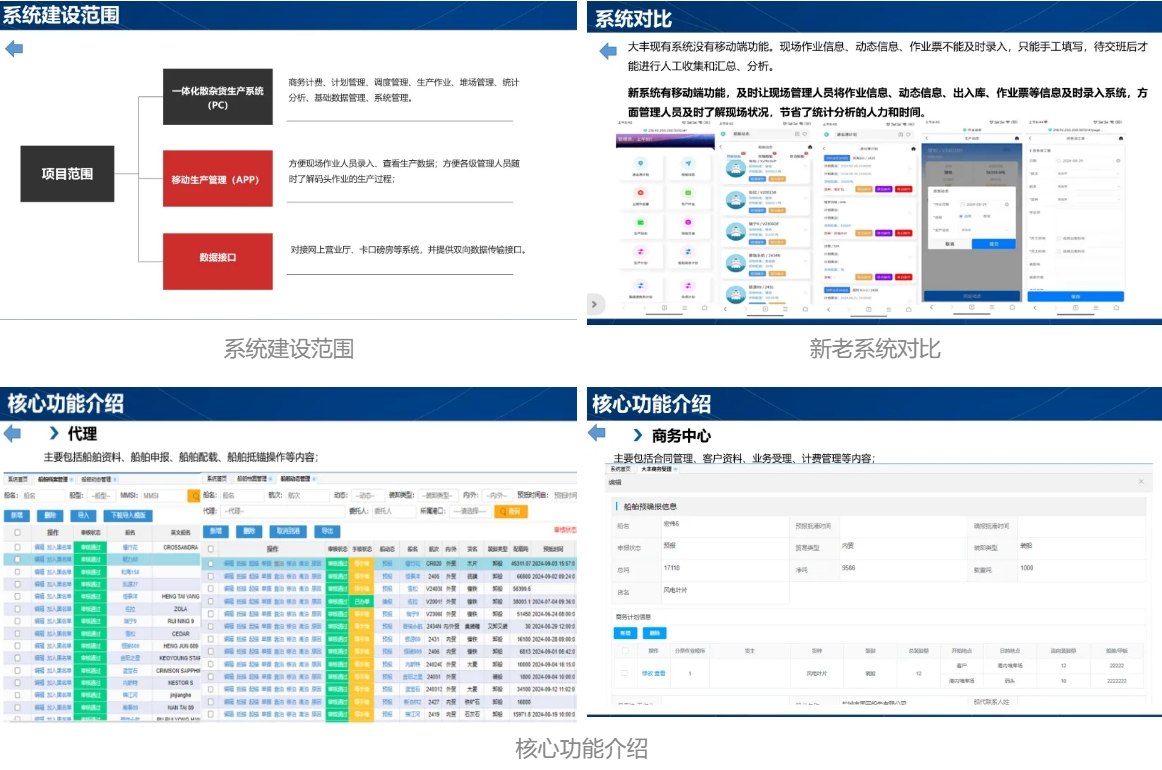 大丰港区一体化散杂货生产管理系统以技术创新为核心驱动力,深度融合大数据、云计算等前沿科技,有力推动了港区业务流程全面电子化转型。它构建起了高效精准的信息管理体系,使得数据能够在平台间实现无缝共享与自动流转。智能报表生成功能通过实时多维度展现港区运营状况,为管理层决策提供坚实的数据支撑。移动端应用更是打破传统空间限制,员工与代理可随时随地接入系统处理业务,极大地提升了办公效率与灵活性。同时,系统摒弃繁琐的人工统计模式,避免重复劳动,各类生产经营表单均可一键导出,既保证了数据的准确度也提升了统计效率,为大丰港区生产经营一体化管理注入了强劲动力。