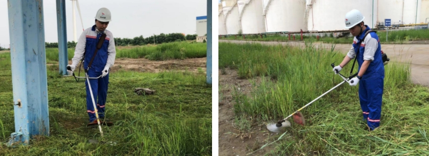 受海边地质土壤环境影响,港储石化库区易产生杂草,外包除草成本投入较大,人工清理时间较长且治标不治本。港储石化针对上述情况,结合降本增效行动,推进库区形象工作,实行公司一线员工利用加班时间为公司库区除草,节省人工成本约0.5万元。