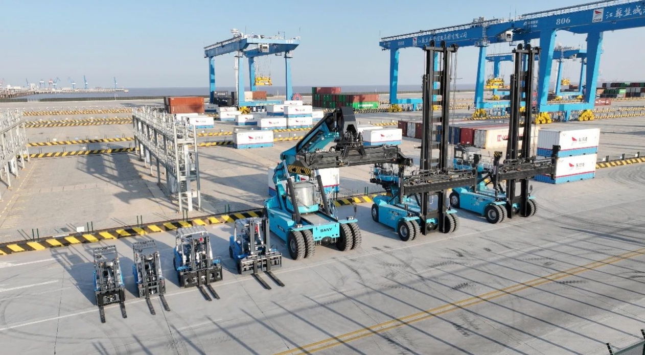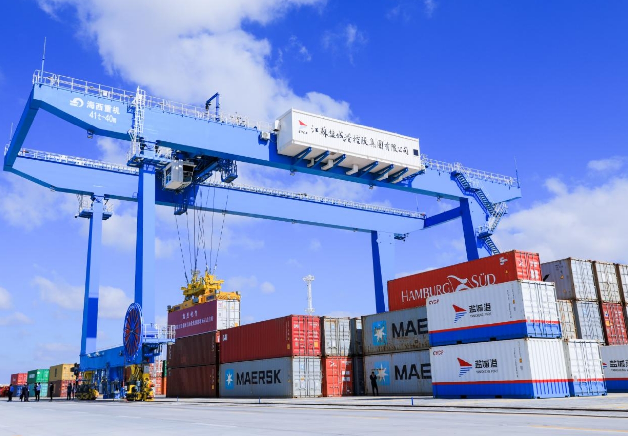 盐城港自动化集装箱堆场总投资4.5亿元,占地面积400亩,2022年正式投入启用,是江苏沿海港口首个自动化集装箱堆场,年集装箱周转量可达到100万TEU。堆场集成自动化无人轨道吊、智能一体化TOS系统、数字孪生等系统建设,实现了堆场作业的无人化操作、轨道吊无人驾驶、闸口无人值守、集装箱无人理货、配电房无人监控等智能化管理。