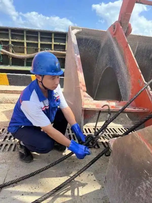 为保障港口的生产经营及设备的正常运行,他丝毫不懈怠,及时更换钢丝绳,保障假期安全。