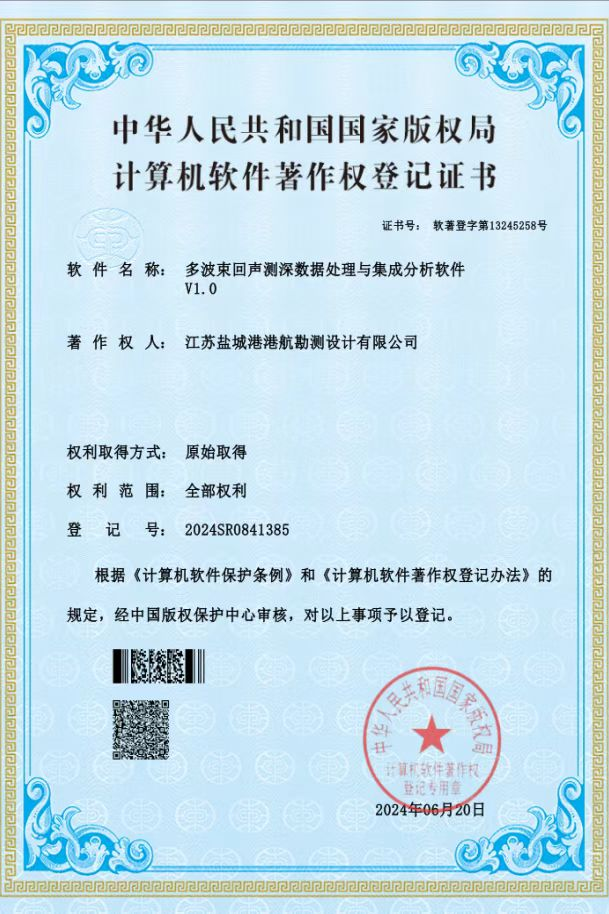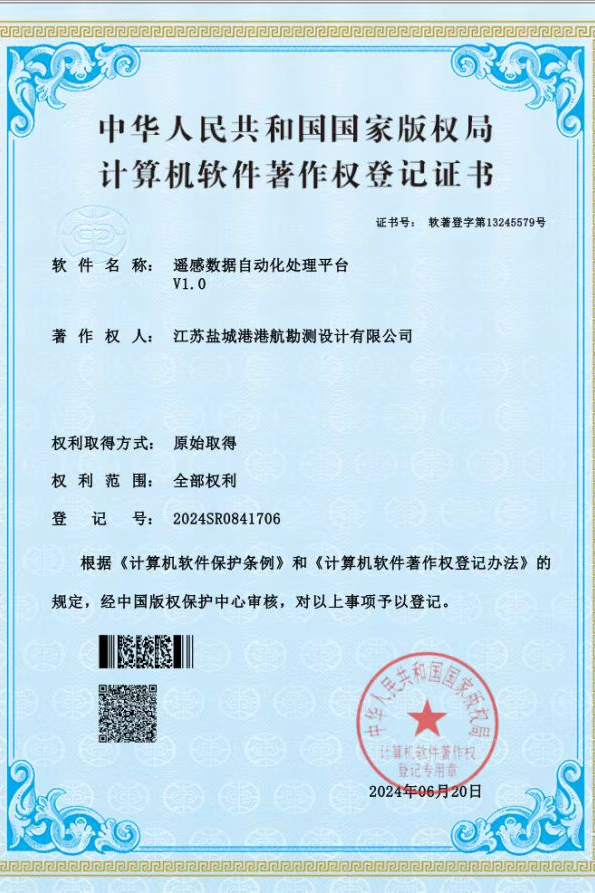 勘测设计公司积极推进创新创效工作,结合业务实际情况进行技术创新和课题研究。2024年公司取得软件著作专利3件(《多波束回声测深数据处理与集成分析软件V1.0》《水环境智能分析系统V1.0》《遥感数据自动化处理平台V1.0》),有力提升了公司测绘知识产权软件产品的权威性和专业化测绘技术的竞争力;开展《盐城港四港区理论最低潮面推算》自主课题研究,课题成果将在提升航行安全、优化航道利用、提高工程决策准确性等多方面带来经济效益。