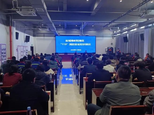 在全国第33个全国消防宣传月到来之际。盐城港射阳港区根据活动主题通过悬挂消防安全宣传横幅、大屏播放消防安全视频与依托企业微信群发布消防安全小知识相结合的形式,让全体员工在潜移默化中学习消防、了解消防、重视消防,着力扩大消防安全宣传的覆盖面和影响力。