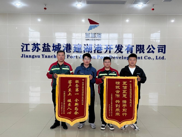 坚守责任之心,勇担使命之任。近日,盐城港建湖港区收到江苏锦达保税仓储股份有限公司及上海英斯贝克商品检验有限公司赠送的“服务第一 全心为企”与“互信互惠 携手前行”荣誉锦旗,对盐城港建湖港区在2024年度在铬铁运输业务中提供的优质服务表示高度认可和支持。