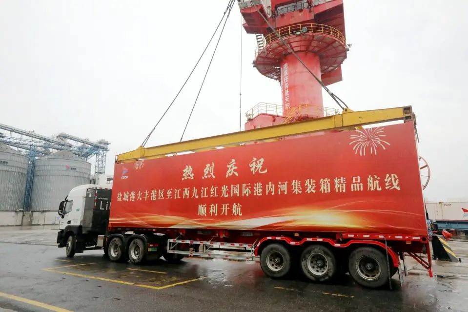 九江红光国际港是江西投资规模最大、建设标准最高、吞吐能力最强的集装箱专用码头。航线开通后,打通了盐城至九江两地的水上物流网络,不仅为盐城的内外贸企业提供了一条稳定可靠的“浔需盐入”水运路线,更有效降低了企业的物流成本,通过此航线可以把九江口岸与盐城港服务功能对接起来,充分发挥各自航运、码头优势资源,联手为腹地企业打造效率更高的“多式联运”服务产品。同时,也进一步提升了盐城港的集疏运能力和市场竞争力,为盐城港服务长江经济带,发挥淮河生态经济带出海门户港优势提供重要的支撑作用。