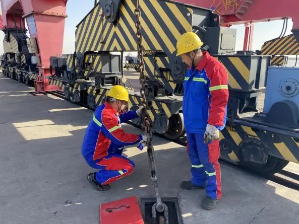 “磨刀不误砍柴工”,射阳港区结合现场实际情况,制定班组检查方案,重点做好防寒、防冻、防风、防火等季节性工作的准备。生产保障组将设备管理关口前移,加大冬季设备整修力度,无死角地开展设备换季大检查,对设备逐件、逐项进行防寒整治,对发现的问题做到及时整治、协调处理、实名销号,同时对设备密封性能进行“地毯式”排查,建立相关台账。按照大修标准和周期管控要求,对门机设备四大主要机构及电控部分进行检修,切实提升设备可靠性,有效保障连续生产。