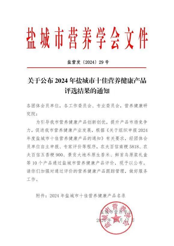 近日,盐城市十佳营养健康产品评选结果出炉,盐城湿地矿泉水有限公司“湿地泉”系列偏硅酸饮用天然矿泉水荣获2024年盐城市十佳营养健康产品称号。