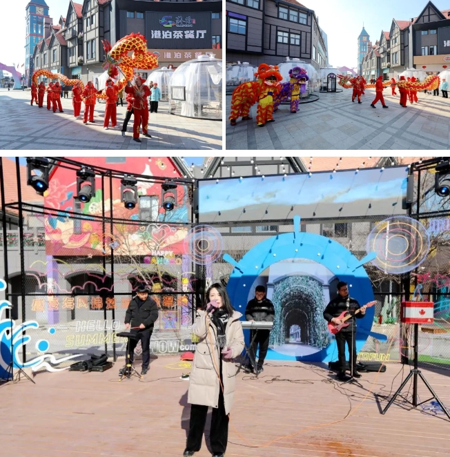 一踏入莎士比亚商贸小镇,港泊系列餐饮门店、跨境电商门店都洋溢着浓浓的年味。红灯笼高高悬挂,彩旗随风飘扬,喜庆的对联贴满门窗,瞬间将人们带入春节的喜庆氛围中。舞龙舞狮表演无疑是小镇的重头戏,广场上,舞龙在灯火的映照下蜿蜒舞动,身姿矫健,色彩斑斓,时而腾空而起,时而盘旋游走,气势磅礴,引得观众阵阵惊呼。舞狮表演同样精彩绝伦,狮子们眼神灵动,表情丰富,时而翻滚跳跃,时而嬉戏玩耍,为观众带来无尽的欢乐与好运。