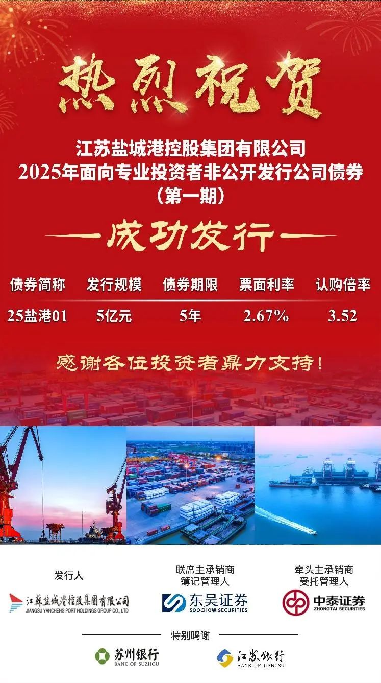 2月13日,集团成功发行2025年度第一期私募公司债。发行规模5亿元,期限5年,票面利率2.67%,认购倍率3.52,创集团成立以来同类型、同期限债券产品发行利率新低。