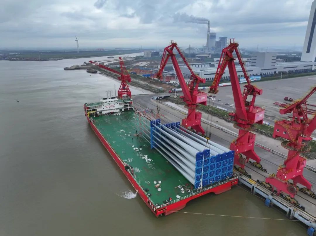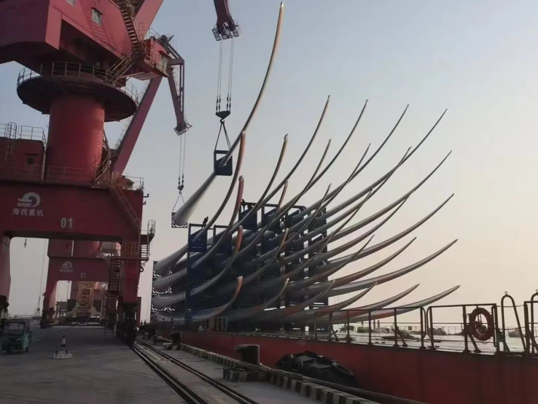 据悉,此次叶片出口项目是远景能源出口至印度坎德拉港EN-156项目的第5船,装载量达到20套60片,射阳港区风电公司与业主单位反复沟通并根据码头实际情况,连续攻克堆码数据验证、作业中双机联动半径实验与集港运输数据可行性验证等技术壁垒,确保作业方案科学有序。