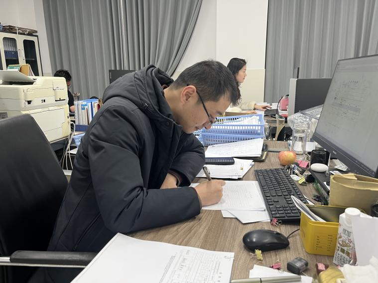 打电话、盯现场、整理档案,每一次项目发起、每一个合同审批、每一个项目进度审核,投发人以无数次的低头测算,实现工程项目的序时推进。