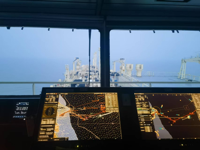 面对“晨昏蒙影”特殊时段(黎明前光线昏暗期),引航员提前1小时登轮,与船长反复核对潮汐、流速和船舶操纵特性。在朝阳初升的关键窗口期,引航员通过精准操控,在大马力拖轮协同配合下,克服船舶惯性、风流压差等技术难点完成精准靠泊。