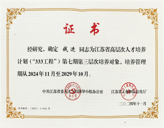 近日,江苏省高层次人才培养计划(“333 工程”)第七期对象评选结果正式公布,在这场汇聚全省自然科学、工程技术、哲学社会科学等领域精英的激烈角逐中,农业科技集团钱进同志成功入选第三层次(中青年学术技术带头人)培养对象。