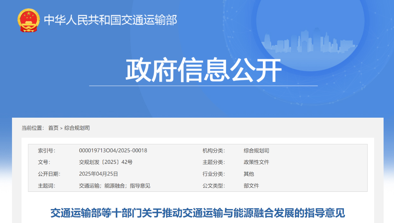 为加快建设交通强国和新型能源体系,推进交通基础设施网与能源网融合发展,保障国家能源安全,现就推动交通运输与能源融合发展,提出如下意见。