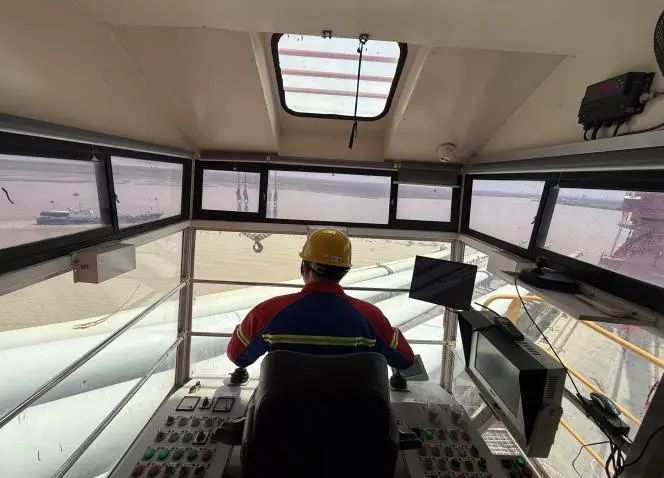 抓斗起落在数十米的高空中划出流畅弧线,钢齿咬合的瞬间,货物簌簌滑落,门机室的玻璃接住了阳光抛来的金线,织进了门机工的工装里。他们心无旁骛,双手稳如磐石,凭借毫米级的操作精度,满载时控制抓斗匀速下沉,避免货物散落;空载时调整角度规避障碍物,确保设备与人员安全,全力提升港区货物吞吐量,为港区完成年度目标任务贡献力量。