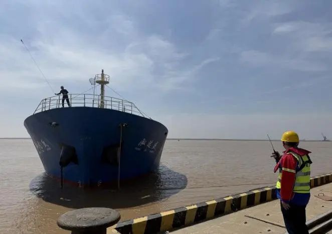在射阳港区码头前沿,穿戴整齐调度员正和船长、码头操作人员通过对讲机保持密切沟通,根据实际情况发出靠泊指令,指挥船舶控制航速、调整船位,确保船舶平行、缓慢地靠近泊位。同时提醒码头操作人员准备好缆绳、护舷等设备,完成系缆固定船舶工作。满分穿搭为调度员的日常工作保驾护航,精准调度为下一步的装卸作业提供了坚实的保障和高效的指引。